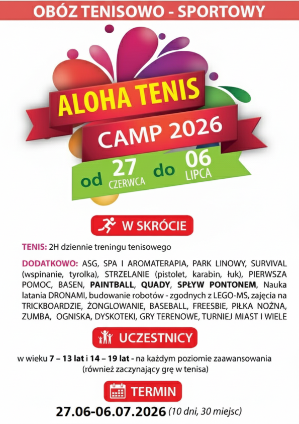ALOHA TENIS CAMP 2026- OBÓZ LETNI - szczegółowa oferta